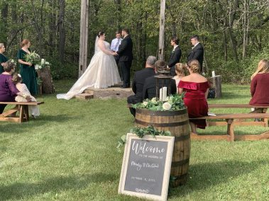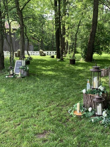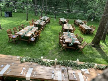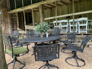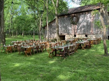 The Barn at Clover Ridge Events provides the rustic chic space for your next event. A century old barn with limestone foundation nestled on the edge of the woods provides a unique and picturesque backdrop for an outdoor ceremony. A gathering inside may appreciate the hand hewn beams with timber peg joints and offers an intimate capacity of 60. The lower level has a capacity of 50. The Barn also has two patio areas. Electricity was new to the Barn in 2020. Edison style strung lights provide a romantic atmosphere for your evening. Included with the barn are green spaces, flower beds, a field of clover and grass for parking, and portable restrooms. Also included are up to 150 white folding chairs, up to 150 wooden chairs and hand-crafted farm tables that seat 8 or 10. Picture your wedding, celebration of life, professional training, baby shower, proposal, anniversary party or family reunion at the Barn.
